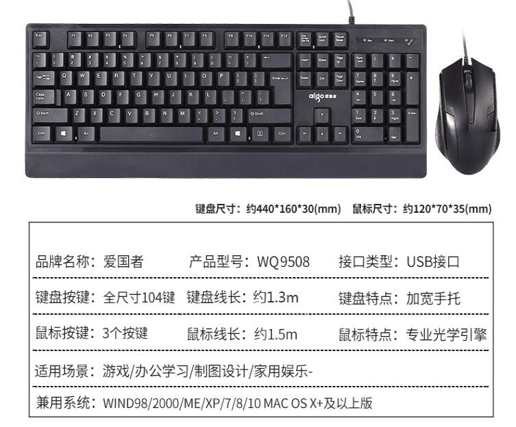 愛國(guó)者9508電腦鍵鼠套裝有線鍵盤鼠標(biāo)USB接口臺(tái)式筆記本辦公家用
