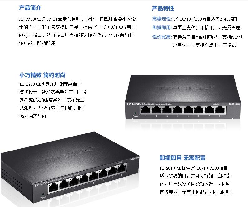 TP-LINK TL-SG1008D 8口千兆交換機 鋼殼高速1000M網(wǎng)絡(luò)tplink安防監(jiān)控交換機八口